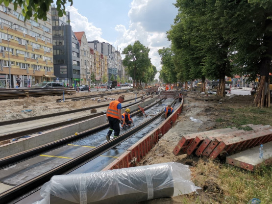 Plany na najbliższe dni obejmują m.in. wykonanie koryta drogowo-torowego na odcinku pl. Rodła – al. Niepodległości i przygotowanie warstw konstrukcji drogowo-torowych na pl. Żołnierza Polskiego, ul. Piłsudskiego, al. Wyzwolenia oraz płyty betonowej pod torowisko na al. Wyzwolenia. Na al. Niepodległości będą układane szyny.