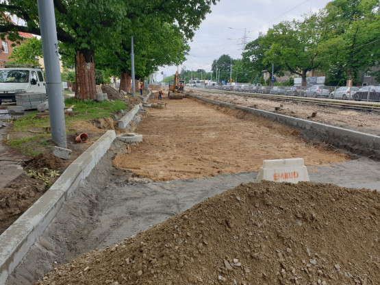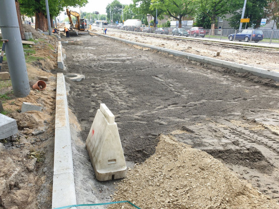 Na al. Wojska Polskiego prowadzone są obecnie prace związane z tzw. korytowaniem i kolejnych układaniem warstw nawierzchni. Pojawiły się już betonowe krawężniki. Podobne roboty trwają w ciągu ul. Jasienicy.