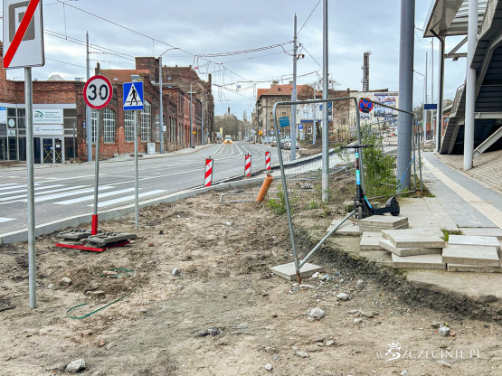 Warto pamiętać, że remontowane ulice wciąż są placem budowy.. Są miejsca, w których brakuje jeszcze chodników. Trzeba je ułożyć między innymi na odcinku między budynkiem Kolumba 13 a ul. Nadodrzańską (od strony torów kolejowych), w okolicach Dworca Głównego czy na ul. Dworcowej. Pojedynczych pracowników można było zobaczyć z okien tramwajów również w sobotę rano.