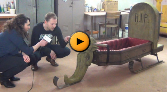 Gustowną trumnę rodem z „Rodziny Adamsów” artysta stworzył z płyty OSB, sklejki, gąbki i satyny. Przód został zrobiony ze starej kierownicy od roweru (dlatego głowa na przedzie musiała mieć język), a za podwozie posłużyły płozy z przeciętych sanek. - Chciałem zrobić taką starą trumnę – taką, jakiej nie ma nigdzie w sklepie, bo raczej bordowa satyna nie jest modna w tym sezonie – żartuje Marcin Zbierski. Twórca nie ujawnia ile wydał na swoje dzieło – Niestety nie mogę ujawnić kosztów. Nie było to tanie. Jakość wykonania idzie w parze z ceną materiałów, ale myślę że efekt końcowy wynagrodził mi te koszty.