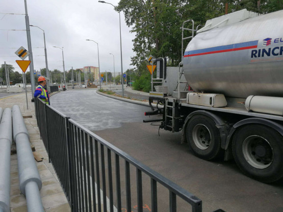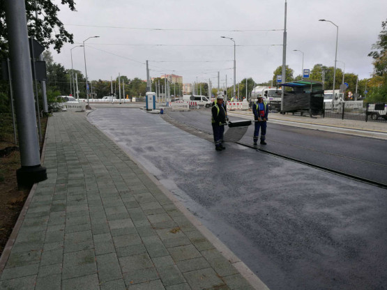 Prace cały czas toczą się również na innych fragmentach przebudowywanej ulicy. Na jezdni wzdłuż torowiska pojawiła się warstwa ścieralna. Na rondzie przy skrzyżowaniu z al. Wojska Polskiego wykonywana jest trakcja tramwajowa. Słupy stawiane są w miejscu po usuniętej magistrali wodociągowej.