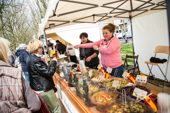 Wystawcy oferują typowo jarmarkowe specjały, znajdziemy więc tam wędliny, chleby, sery, suszone owoce, muffinki, czekoladowe narzędzia, kolby kukurydzy, hiszpańskie oliwki, greckie chałwy. Są też ręcznie robione lizaki w kształcie misiów, ptaszków i postaci znanych z bajek. Furorę robi stoisko z kolorową watą cukrową, którą dzieci dostają gratis. Równie tłoczno jest przy stoisku z przyprawami z całego świata. Dla chcących zakupione smakołyki spróbować na miejscu, co kawałek przygotowano dodatkowe ławki i stoliki.