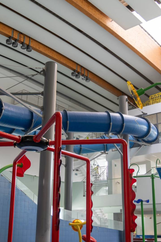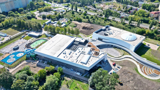 – Od kilku dni trwają testy szczelności poszczególnych niecek basenowych. Woda przepłynęła już między innymi przez basen sportowy, brodzik z dmuchańcami, basen barowy w saunarium, basen barowy w strefie VIP, a także wewnętrzny i zewnętrzny basen rekreacyjny – wylicza Piotr Zieliński.