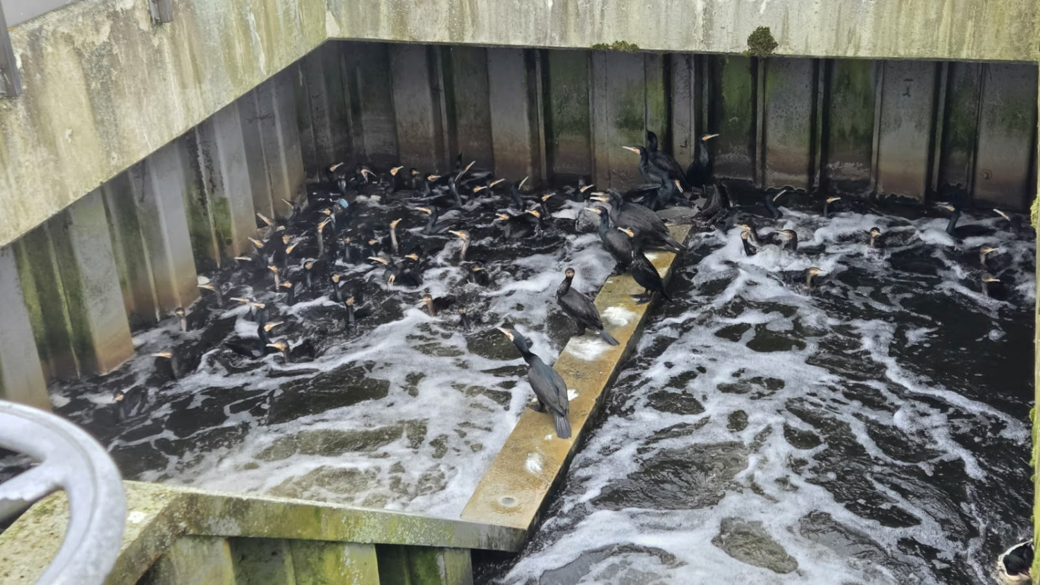 - W miejscu gdzie jest wrzut wody oczyszczonej, w komorze zauważyliśmy wielkie stado ptakow, najprawdopodobniej kormoranów. O sprawie poinformowaliśmy straż miejską i łowczego miejskiego. Pierwsza interwencja łowczego niestety się nie udała. Woda oczyszczona ma okolo 12 stopni, więc ptaki przyleciały w to miejsce, ponieważ jest im tam ciepło. To pierwsza tego typu sytuacja, jednak zaplanujemy zabezpieczenie tej przestrzeni specjalną siatką przed ptakami - mówi w rozmowie z portalem wSzczecinie.pl Hanna Pieczyńska z Zakładu Wodociągów i Kanalizacji.