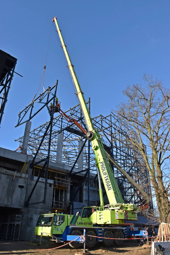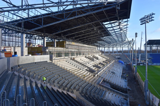 Tym samym osiągnięty został docelowy kształt stadionu, choć w miejscu łącznika do wykonania zostało jeszcze m.in. pokrycie dachu. Przypomnijmy, że od dawna gotowe są trybuna południowa i zachodnia, na których mogą już zasiadać kibice. Prace toczą się natomiast np. na trybunie północnej.