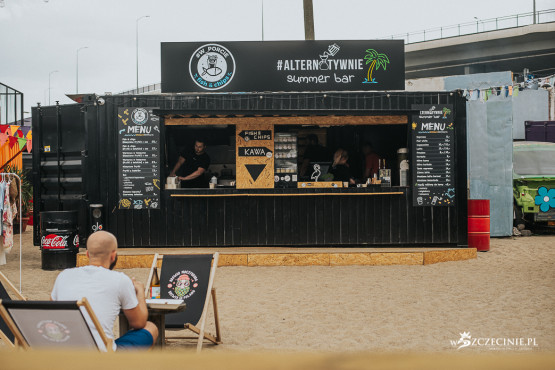 - W Port Barze jesteśmy od czerwca. W dzień przychodzą tutaj całe rodziny, starsze osoby. Natomiast wieczorem witają tutaj młodzi, a przestrzeń staje się typowo imprezowa – opowiada Łukasz, barista kawiarni Alternatywnie, która oprócz lokalu przy al. Wojska Polskiego ma również swój kontener na Łasztowni.