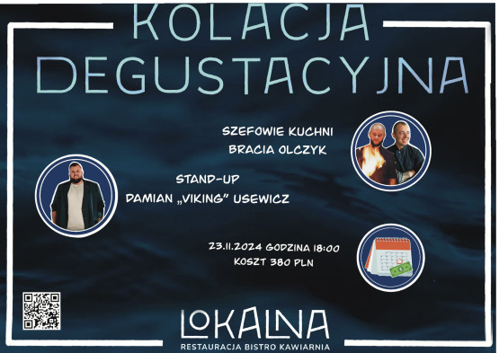 Nietypowa kolacja będzie połączona ze stand-upem Damiana „Vikinga” Usewicza. – To będzie długi i bardzo miły wieczór, na który przewidujemy pięć godzin wypełnionych dobrym jedzeniem oraz występami „Vikinga” – zachęca Piotr Starosta. Wydarzenie odbędzie się 23 listopada. Na kolację obowiązuje rezerwacja. Dania, które zostaną zaserwowane, nie są na co dzień dostępne w menu.