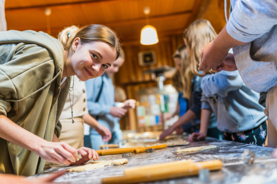 Bardzo chętnie z warsztatów korzystają także grupy seniorów, np. Uniwersytety Trzeciego Wieku. Można też zorganizować tu warsztaty integracyjne dla firmy. Dokładny program zawsze jest dostosowany do konkretnej grupy. – Niezależnie od wieku uczestników, warsztaty zawsze wzmacniają samodzielność, koncentrację, kreatywność i umiejętność pracy w grupie. W przypadku dzieci dodatkowe znaczenie ma sama praca z ciastem: to doskonałe zajęcia sensoryczne, działające na wszystkie zmysły – dodaje Monika Tulikowska. Opowiada, że dla dzieci niezwykle ważna jest sprawczość, jakiej doświadczają na warsztatach. Dostają surowe ciasto, które zamienia się w pachnącą drożdżówkę, pieką proste podpłomyki, których mogą od razu skosztować.