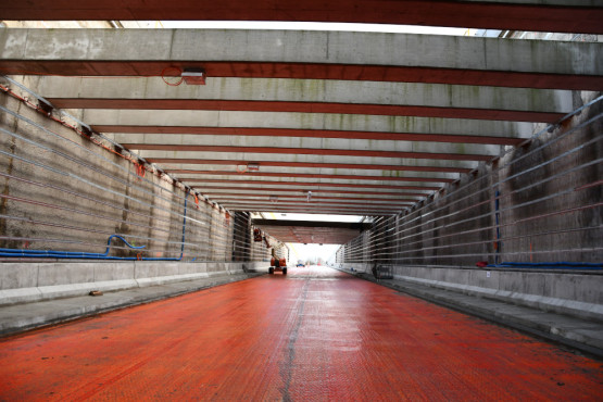 Budowlańcy przygotowują się teraz do wylewki asfaltu. Testy przejdą instalacje: przeciwpożarowa, teletechniczna i elektryczna, które montowane są w specjalnych nawach technicznych pod powierzchnią płyty jezdnej.