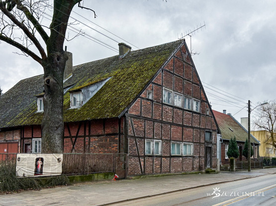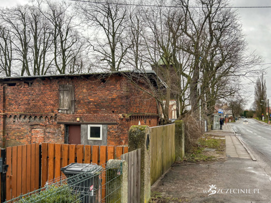 Idąc dalej ulicą Policką, kilkaset metrów od modernistycznego przystanku, naszym oczom ukazuje się poniemiecka zabudowa Stołczyna. Ceglane domy zostały wybudowane najprawdopodobniej w późnych latach 30. XX wieku.