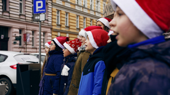 Świąteczne życzenia dla mieszkańców Szczecina. Kolędujące dzieci odwiedziły Śródmieście