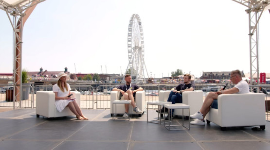 Michał Kaczmarek rozmawia z zaproszonymi gośćmi o ofercie wakacyjnej w Szczecinie.