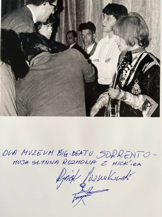 – Jako support grali wówczas Czerwono-Czarni. W muzeum mamy oryginalne zdjęcie lidera tego zespołu – Ryszarda Poznakowskiego – z Mickiem Jaggerem i innymi członkami The Rolling Stones. Jest też napisana specjalnie dla nas dedykacja. To unikatowa sprawa, dla mnie zdecydowanie najcenniejsza z naszych pamiątek. Zwłaszcza, że w Czerwono-Czarnych grał wówczas szczecinianin, Henryk Fabian – mówi Zbigniew „Bitels” Włodarczyk, współtwórca i kustosz Muzeum Muzyki Polskiej w Willi Sorrento.