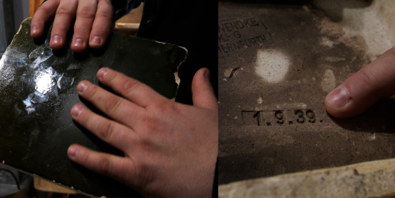 – Dzięki sygnaturze wiemy, że kafel powstał 1 września 1939 roku w kaflarni Schwendkego w Brzegu Dolnym [wtedy niemieckie Dyhernfurth – red.]. Zaledwie 160 kilometrów od polskiego Wielunia, gdzie spadły tego dnia pierwsze niemieckie bomby, co było początkiem II wojny światowej. Nawet nie wiem, skąd mam ten kafel. Pewnie został po jednej z prowadzonych przez nas rozbiórek pieców. Długo się nim nie interesowałem, leżał gdzieś w pracowni, aż odczytałem sygnaturę i uznałem, że musi być częścią wystawy – opowiada zdun Maciej Burdzy.