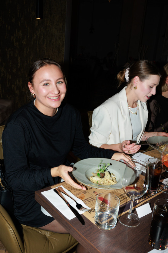 - Na stołach pojawiły się Consommé z jagnięcymi pierogami, żebro wołowe sous vide z sosem demi-glace z gorczycą i miodem, jabłko z rabarbarem zapiekane pod maślaną kruszonką, aksamitny krem z kalafiora z opaloną bagietką oraz makaron z pastą truflową z orzechami pini – dodaje Justyna Hof.