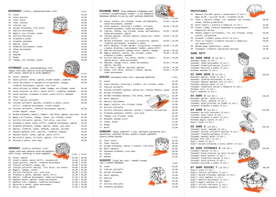 Okazjonalnie w SAME SUSHI będzie można skosztować tuńczyka yellowfin i tuńczyka bluefin. W menu znajdzie się również marynowana makrela w japońskiej zalewie, dorada królewska obrabiana techniką yubiki oraz seriola olbrzymia i węgorz.