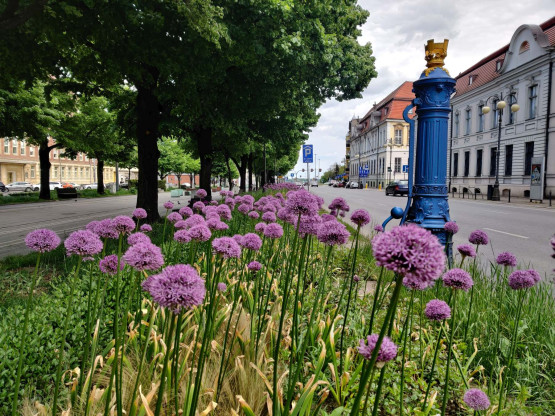– Zimową porą trawy (2,5 tys. ostnicy 'Pony Tail') dawały wrażenie nadmorskiej falującej łąki. Teraz kwitną czosnki olbrzymie, których jesienią posadzono 2,5 tys. szt. Odmiana 'Gladiator' wyróżnia się bardzo okazałymi kwiatostanami w formie dużych fioletowych kul. Kilka lat temu pilotażowo posadzono kilkaset sztuk cebul tego gatunku, które ostatecznie doskonale sprawdziły się w tym miejscu. Stąd decyzja o kolejnych w tak dużej ilości – tłumaczy Kus i dodaje: – Szczecin jest jednym z miast, które może pochwalić się największymi rabatami obsadzonymi czosnkami. Kiedy one przekwitną, oprócz traw, Aleję Kwiatową zdobić będzie róża okrywowa 'Marathon'. Ta doskonała odmiana o odpornych na choroby, błyszczących liściach, sprawdzona już na szczecińskich ulicach będzie kwitła nieprzerwanie aż do listopada.