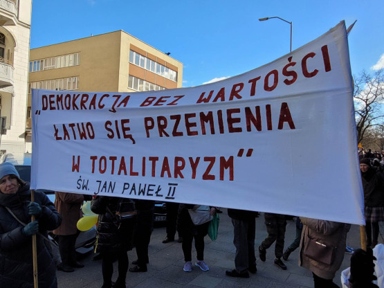 – Naszym obowiązkiem jest wyjść i bronić Jana Pawła II. Europa zmierza w stronę lewactwa. Ludźmi bez wartości łatwiej manipulować. Młodzież staje się głupkowata, nie ma wartości, nie ma szacunku do rodziców, nauczycieli – dodawał Wojciech Woźniak z Fundacji Polskich Wartości.