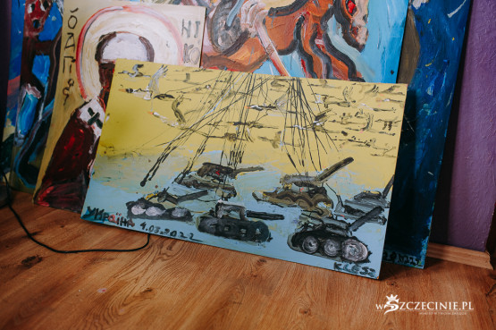I jeszcze: – Jako Polacy powinniśmy być czuli, bo to jest też nasza historia. Demony przeszłości wróciły. Babcia malarza ma 95 lat i powtarza opowieść, jak z mamą i pięciorgiem rodzeństwa, kiedy wybuchła II wojna światowa, uniknęli śmierci, uciekając z wagonu, do którego wsadzili ich hitlerowcy w Gdyni.