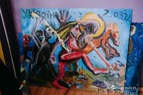 „Ukraina” to obrazy, które Paweł Kleszczewski maluje nocami w piwnicy, swoim bunkrze. Zaczął dzień po rosyjskiej agresji na Ukrainę.
