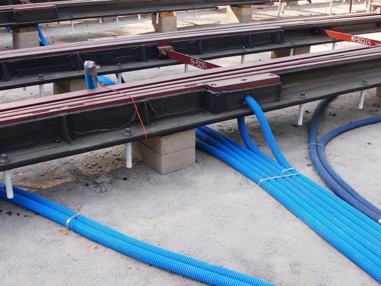 Kanały kablowe do zasilania elektrycznego rozjazdów.