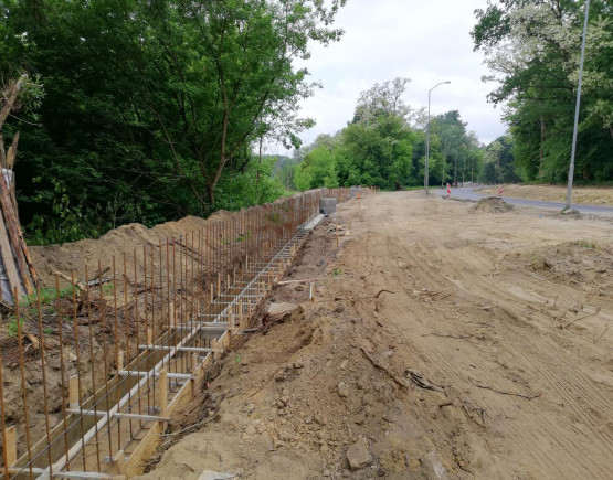 Budowa muru oporowego w rejonie pętli tramwajowej „Las Arkoński”.