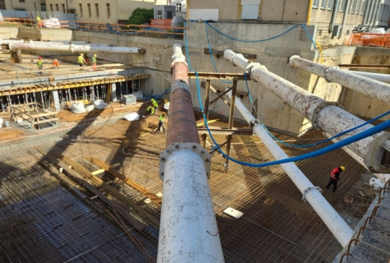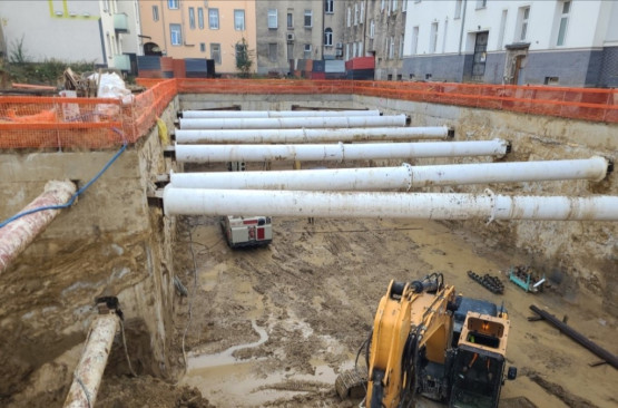 – Obecnie kontynuowane są prace związane z budową parkingu podziemnego na poziomach –2 i –1. Montowane są rozpory, trwa szalowanie i zbrojenie zjazdów – informuje Tomasz Klek, rzecznik prasowy miasta ds. mieszkalnictwa. – Zabetonowano kolejne słupy żelbetowe w obrębie wykonanej płyty fundamentowej, prowadzone są prace polegające na oczyszczaniu ścian szczelinowych. Prowadzony jest także monitoring geodezyjny budynków sąsiadujących oraz prace związane z usunięciem kolizji z istniejącą infrastrukturą.