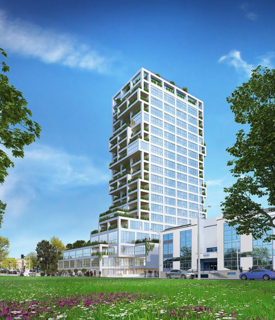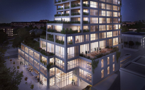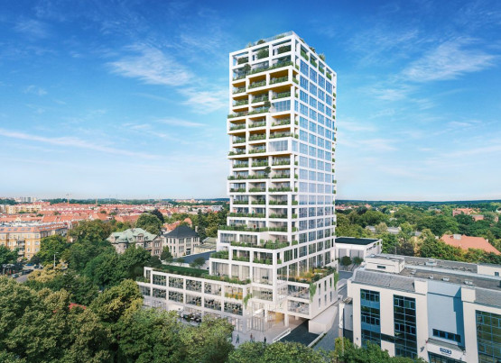 Na piętrach od trzeciego do osiemnastego zaplanowano mieszkania. Znajdzie się tam 114 apartamentów (największe będą 5-pokojowe), z których 92 będzie miało dostęp do zielonych tarasów, od których pochodzi nowa nazwa budynku – Sky Garden. Według danych dostępnych na stronie inwestycji, na razie sprzedano ok. 80 lokali. Na dachu też powstanie taras, dzięki czemu budynek „urośnie” z 65 do 72 metrów.