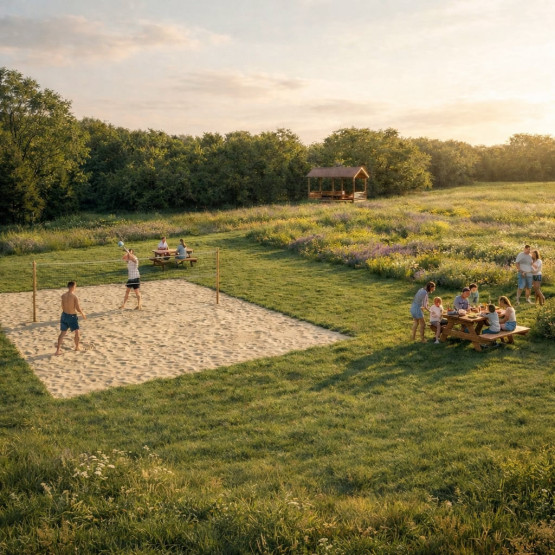 W jego sąsiedztwie zaplanowano strefę rekreacyjno-zabawową z placem zabaw, stołami, wiatami piknikowymi, leżakami, a także boiskiem piaskowym do gry w siatkówkę i badmintona