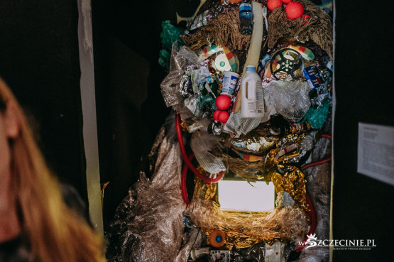 Karolina Gołębiowska już kilka wystaw temu podarowała galerii Tworzę Się kaczkę, teraz na wystawie zawiesiła fotografie kreatywne z cyklu „FutuREcycle”, na których przedstawiła zwierzęta z odpadów. - To jest wizja przyszłości, w której śmieci zaczynają żyć własnym życiem, naśladować świat natury, stopniowo wypierając prawdziwą faunę i florę - mówi artystka. Inspiracja przyszła, kiedy z szóstego piętra zobaczyła wirujący na wietrze worek foliowy, który wyglądał jak meduza. Stworzenie miejskiego krajobrazu kuratorka powierzyła Lumpowi ze szczecińskiego street artu, który w swojej twórczości nadaje przedmiotom drugie życie.
