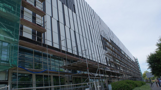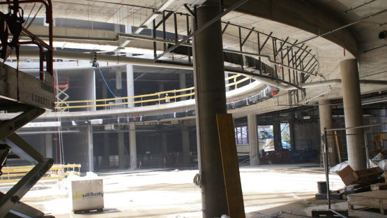Obecnie na placu budowy kończone są ostatnie prace związane z konstrukcją budynku. Zniknęły już dźwigi wewnętrzne, pozostał dźwig zewnętrzny, dzięki któremu będzie można zamontować infrastrukturę techniczną na dachu nowej części obiektu. Na placu budowy pracuje ponad 200 osób.