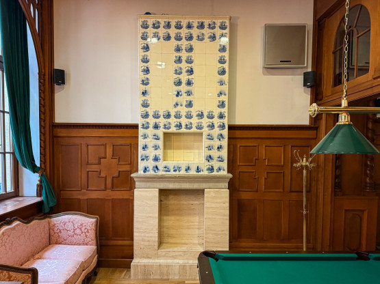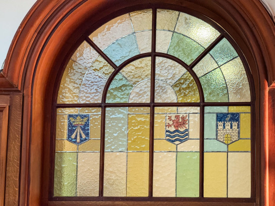 Mowa przede wszystkim o boazerii z czarnego dębu, kominku holenderskim i najbardziej reprezentacyjnej sali lustrzanej. Nad wejściami do niej znajdują się witraże, a niewiele brakowało, by bezpowrotnie zniknęły. Zostały bowiem skradzione podczas jednego z remontów.