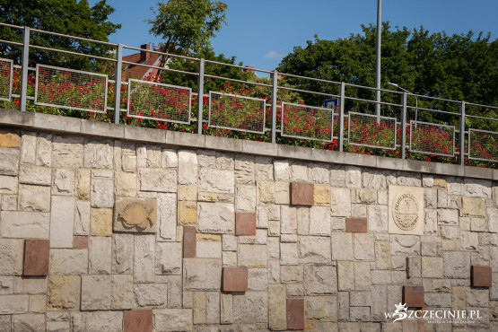 W bruk wkomponowane zostały brązowe płyty upamiętniające m.in. przystąpienie Szczecina do Hanzy w 1278 r., czy podróż księcia Bogusława X do Ziemi Świętej w latach 1496-1498.