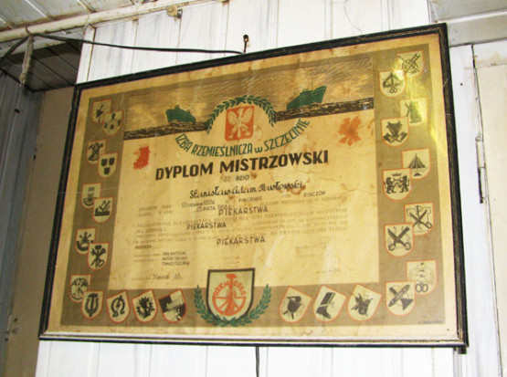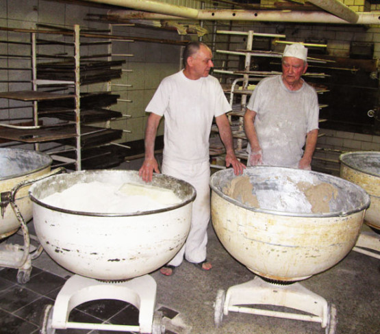 Pan Krzysztof Pawłowski wprowadza nas do samego "wyrobiska", tam, gdzie powstają starorecepturowe bochny, gdzie miesza się, formuje i wypieka "nasz powszedni" - dzisiaj już raczej wyjątkowy - chleb zakwasowy. Owiewa nas zapach mąki i ciasta, zdumiewają w pełni sprawne poniemieckie maszyny. Tu także wita nas uśmiech starszego mężczyzny, samego mistrza piekarniczego, pana Stanisława Pawłowskiego, rocznik 1930.