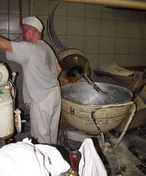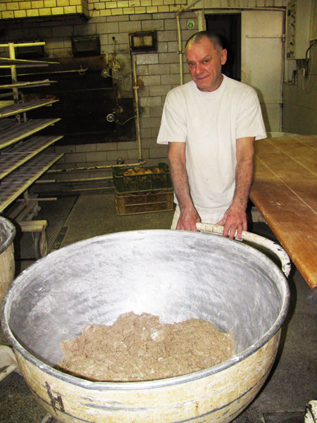 - Zakwas dojrzewa 24 godziny - wprowadza nas w tajniki wypieku pani Helena. - Fermentacja mlekowa musi być odpowiednio długa - wieczorny zakwas jest parokrotnie przerabiany, pierwszy raz około godziny siódmej, potem około piętnastej. Do wypieku chleba nie zużywamy całego zakwasu, zawsze zostawiamy pewną ilość do kolejnego zaczynu. Polecamy chleb żytni razowy, czyli wypiekany z mąki z otrębami oraz chleb pytlowy z 7 ziarnami. Mąka pytlowa to również mąka żytnia, ale jasna, delikatniejsza od całoziarnowej, czyli tej z otrębami. Smaczne i zdrowe jest również pieczywo z mąki graham, czyli pszenicy grubo mielonej. Ale je robi się wyłącznie z wykorzystaniem drożdży.