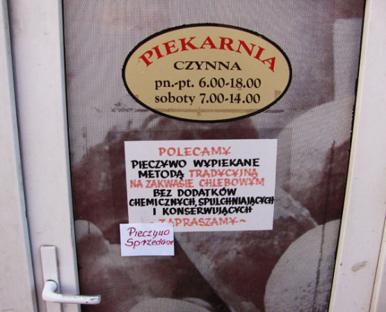 Trzymamy w rękach pachnący naturą chleb. Jakże inny od „zwykłego krojonego”, gdzie na liście składników widnieje m.in. polepszacz, środek do przetwarzania mąki, środek antypleśniowy. Ale aby zdobyć taki chleb, najlepiej przyjść do piekarni przed południem. Po interwencji życzliwych osób, kupujących jest w ostatnich dniach więcej i już około godziny 13. pieczywo jest wyprzedane. Oby nie było to tylko chwilowe zainteresowanie. Warto bowiem kupować w sprawdzonych miejscach, gdzie możemy uzyskać informację o jakości i pochodzeniu produktu. A do takich właśnie miejsc zaliczyć można rodzinną piekarnię przy ul. Kołłątaja 27.