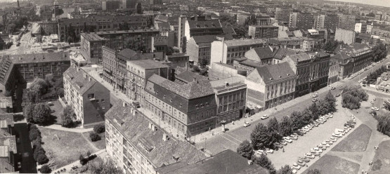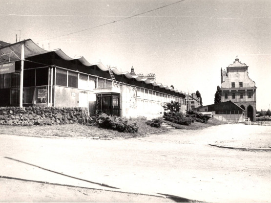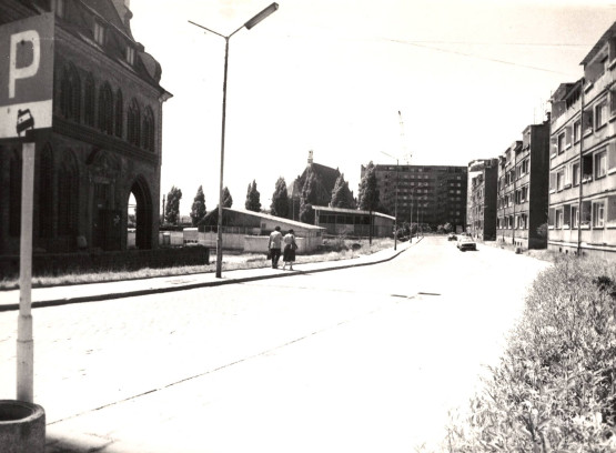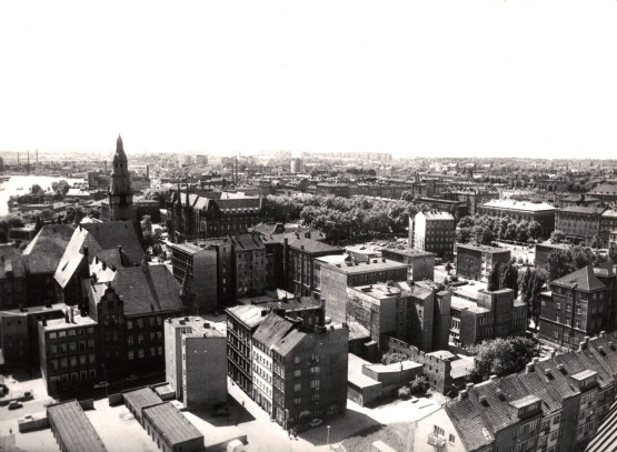 Ratusz Miejski, a w tle nieistniejący już dziś hotel Arkona: