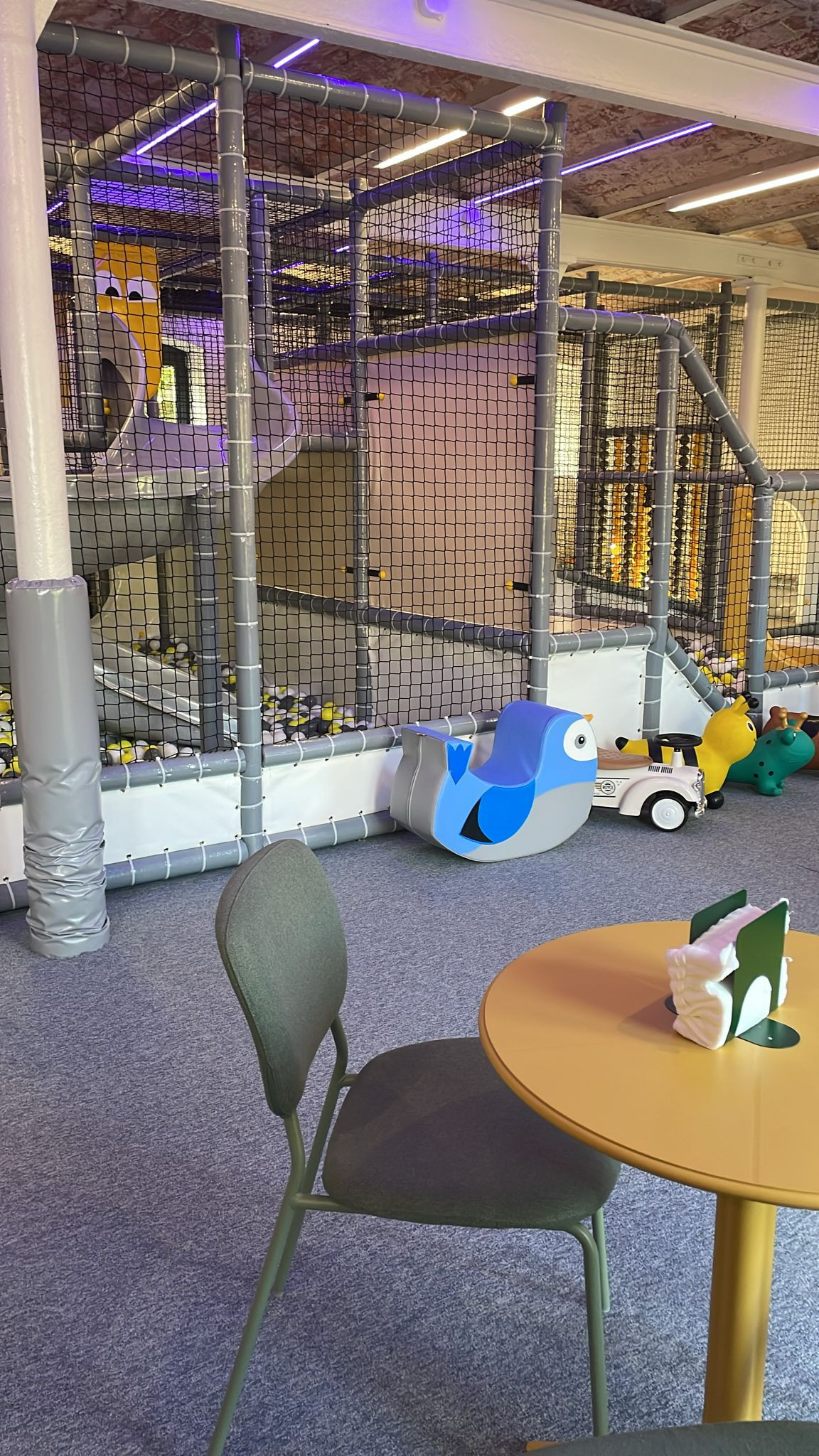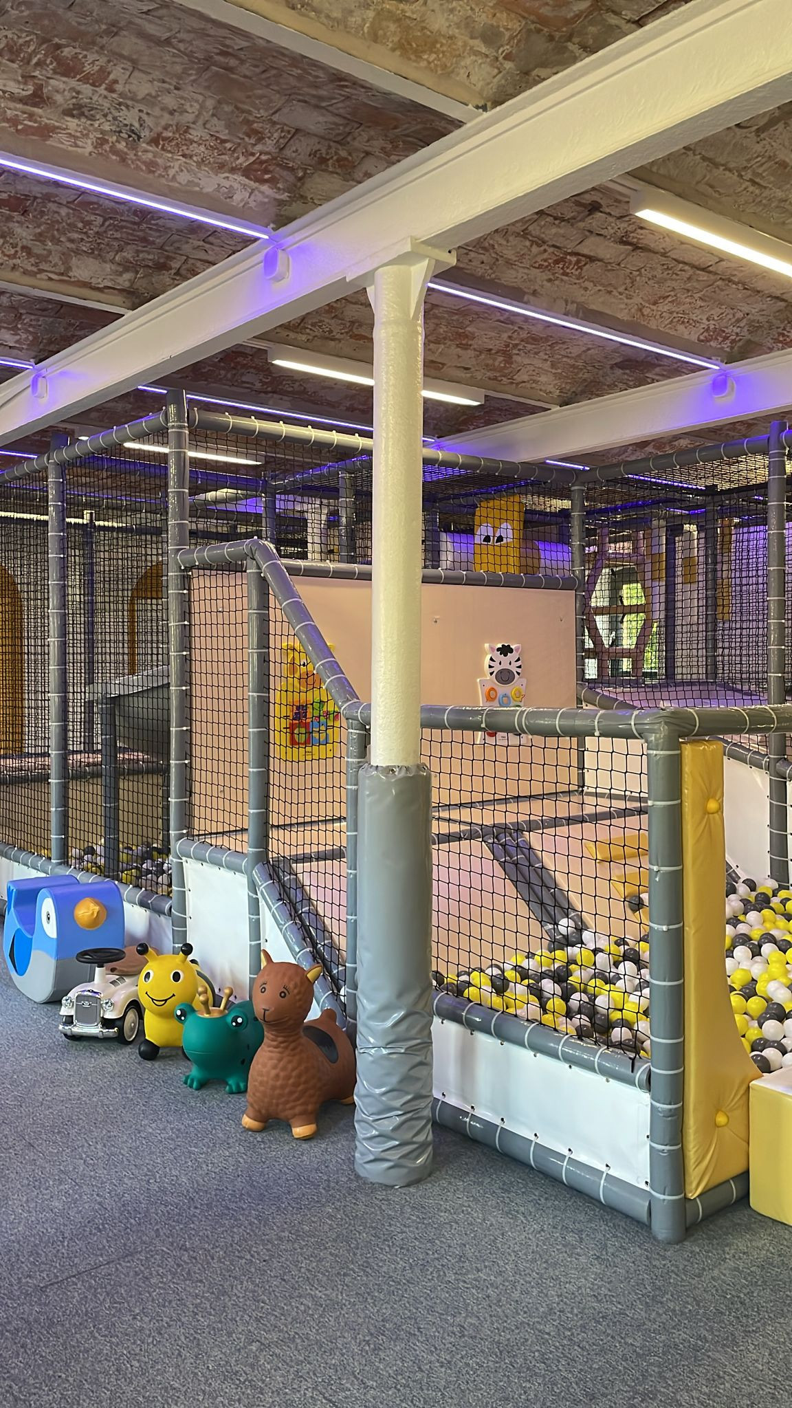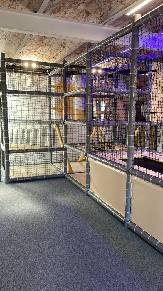 Miejsce jest absolutnie niezwykłe także ze względu na architekturę i zamysł zagospodarowania starej stodoły w nowoczesną salę zabaw w loftowym stylu. W jednym pomieszczeniu można napić się kawy i zjeść pizzę, a drugie pomieszczenie to sala zabaw z m.in. basenem z kulkami, małpim gajem czy trampolinami.