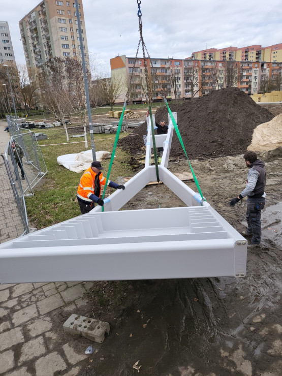 – Wieża dla jaskółek jest wyborem szczecinian, którzy chcieli mieć taki obiekt w swoim otoczeniu. Wybrali ją w ramach Szczecińskiego Budżetu Obywatelskiego – przypomina Andrzej Kus, rzecznik prasowy Zakładu Usług Komunalnych. – Na placu budowy trwa jej montaż.