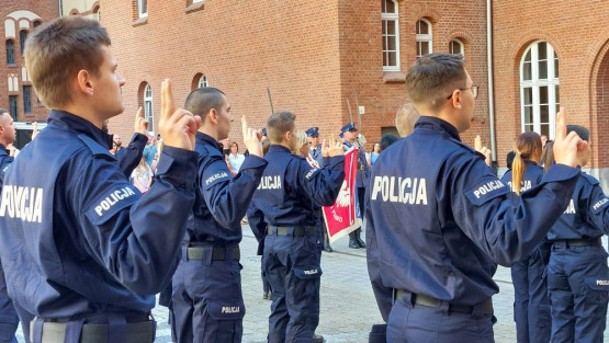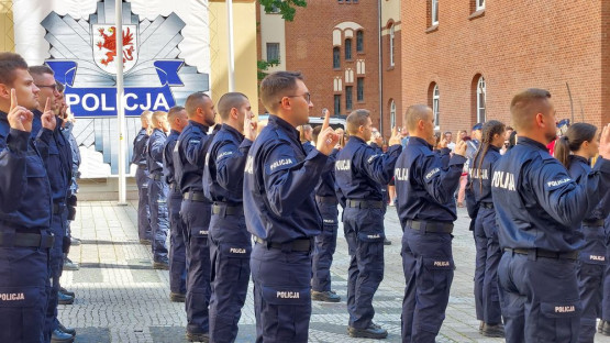 Uroczyste ślubowanie nowych funkcjonariuszy odbyło się w piątek na dziedzińcu Komendy Wojewódzkiej Policji w Szczecinie. Słowa przysięgi wypowiedzieli w obecności rodzin, zaproszonych gości i przede wszystkim swoich nowych przełożonych.