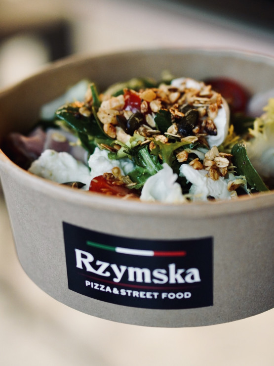 Menu uzupełniają sałatki oraz zupy. Zaskoczeniem może być wyborny krem z selera z serem taleggio DOP, oliwą truflową i karczochem. W Rzymskiej znajdziemy także sezonowe minestrone z dużą ilością warzyw. Co ciekawe, zupy podawane są w… jadalnych miskach.
