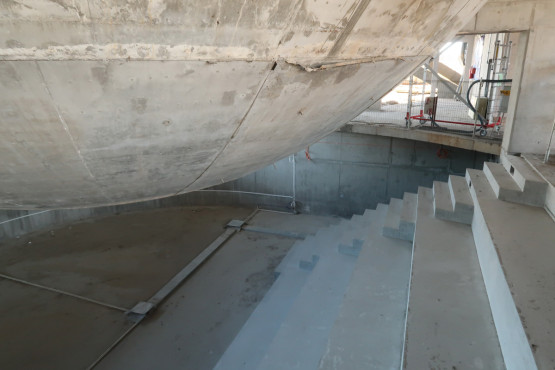 Żelbetowa kula planetarium sprawia wrażenie unoszącej się w powietrzu bez podparcia. W rzeczywistości zawieszona jest na szkieletowej konstrukcji budynku Morskiego Centrum Nauki. Jej średnica wynosi 13 metrów, powierzchnia - 531 m2, a ściany mają grubość 30 cm. Do uzyskania idealnej geometrii wykorzystano specjalne szalunki firmy DOKA.