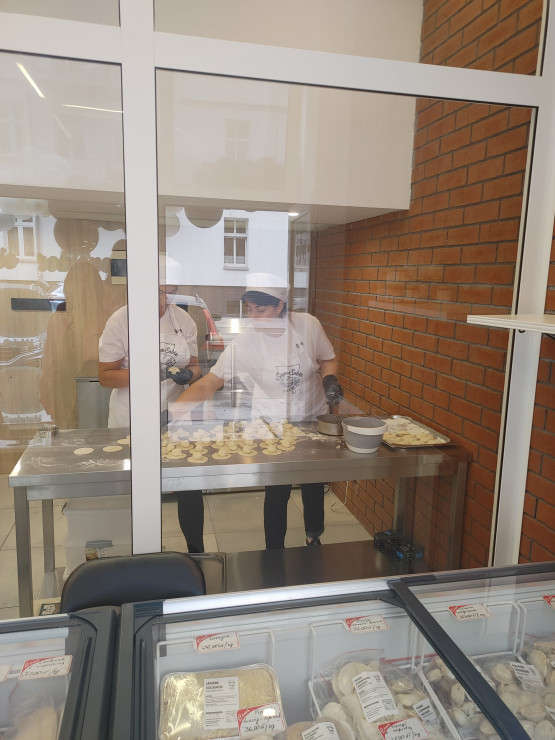 – To są receptury z mojego rodzinnego domu. Wszystko, co znajduje się na naszych półkach i w lodówkach, to ręczne wyroby ze świeżych produktów. Na oczach naszych mieszkańców panie lepią pierogi, składają naleśniki czy formują chinkali. Najważniejsze są dla nas jakość i smak – mówi pani Tatiana.