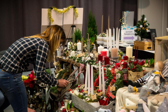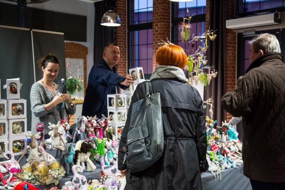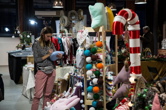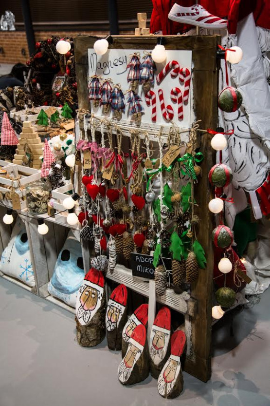 W każdym z tych miejsc stoiska uginają się od rękodzieła i bożonarodzeniowych ozdób. Można przebierać w świątecznych stroikach, ozdobnych miniaturowych choinkach, bożonarodzeniowych dekoracjach z naturalnych dodatków, autorskiej biżuterii, ręcznie szytych maskotkach (nie tylko tradycyjnych misiach, ale też kotach, dinozaurach czy kucykach z dredami). Wzrok przyciągają rzędy Mikołajów zrobionych z kawałków brzozy.