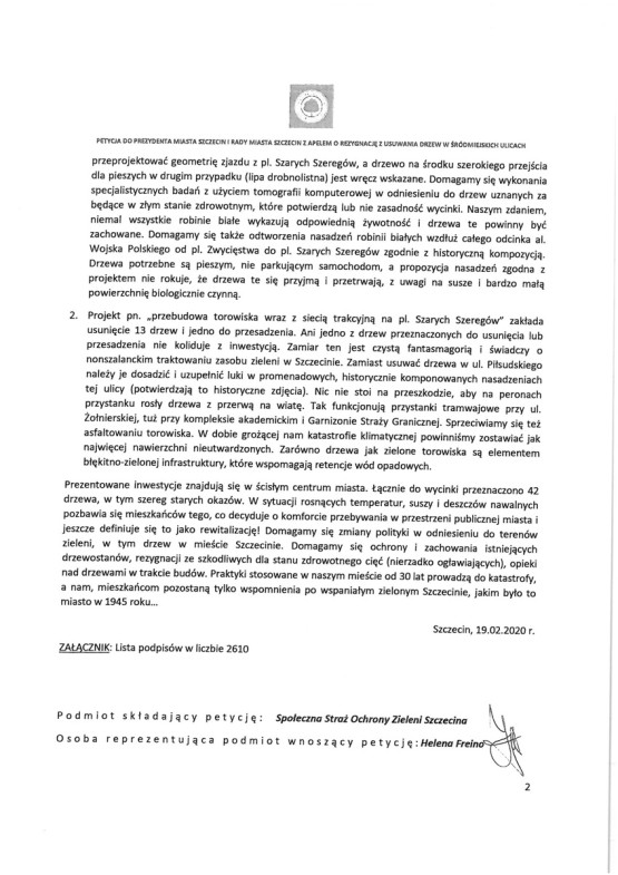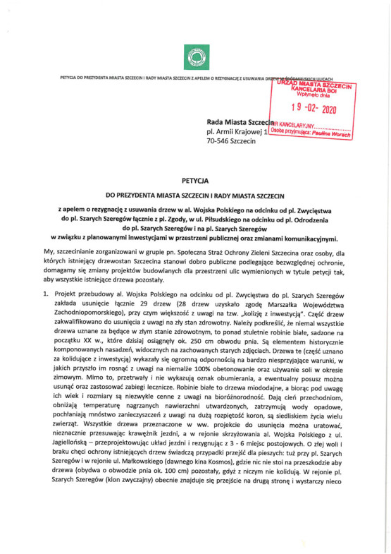 Temat pojawił się podczas obrad w związku z petycją Straży Ochrony Zieleni Szczecina z apelem o rezygnację z usuwania drzew w al. Wojska Polskiego. Taki dokument, z podpisami 2610 osób, trafił już w lutym do prezydenta i radnych.