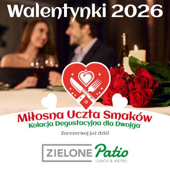 Niech Walentynki 2026 w Zielonym Patio będą świętem miłości, smaku i dobrej zabawy – niezależnie od tego, czy wybierzesz taneczny bal, czy romantyczną kolację degustacyjną.