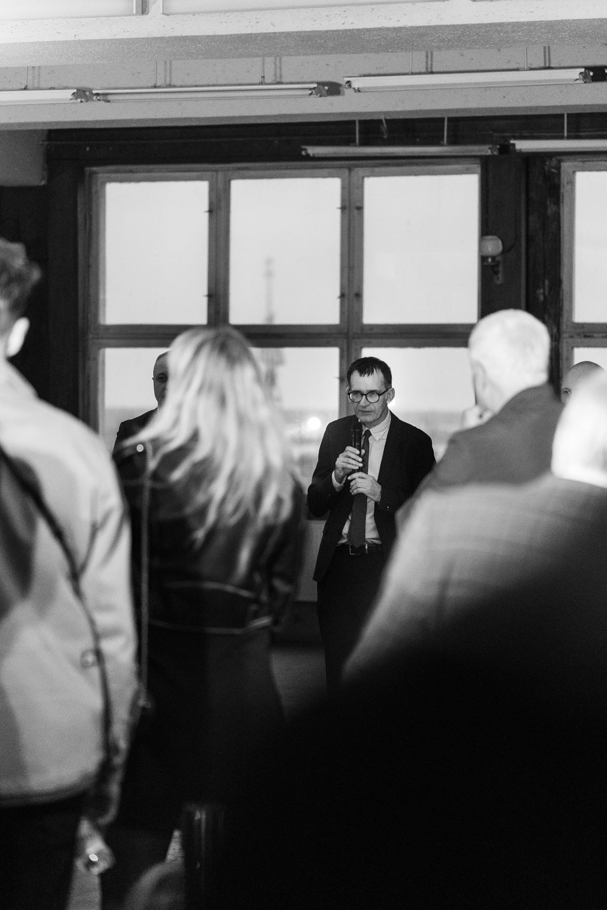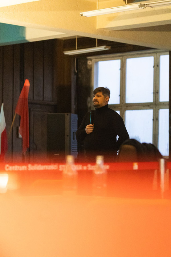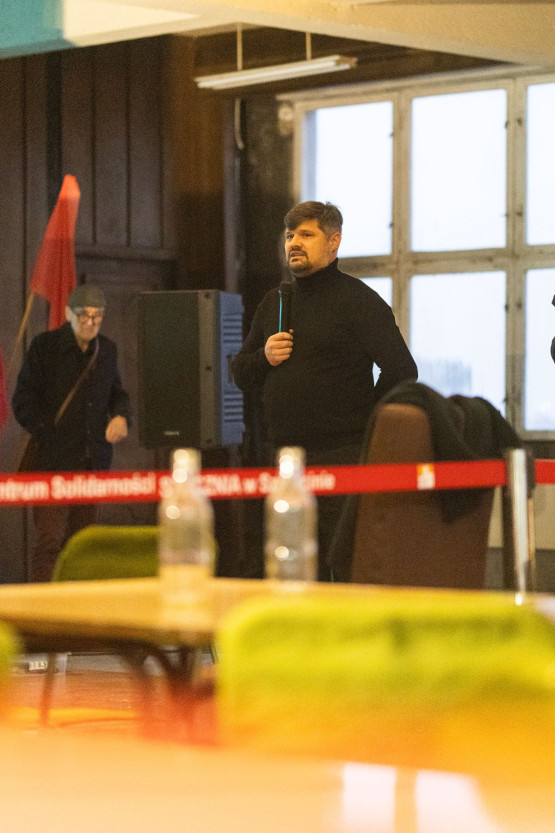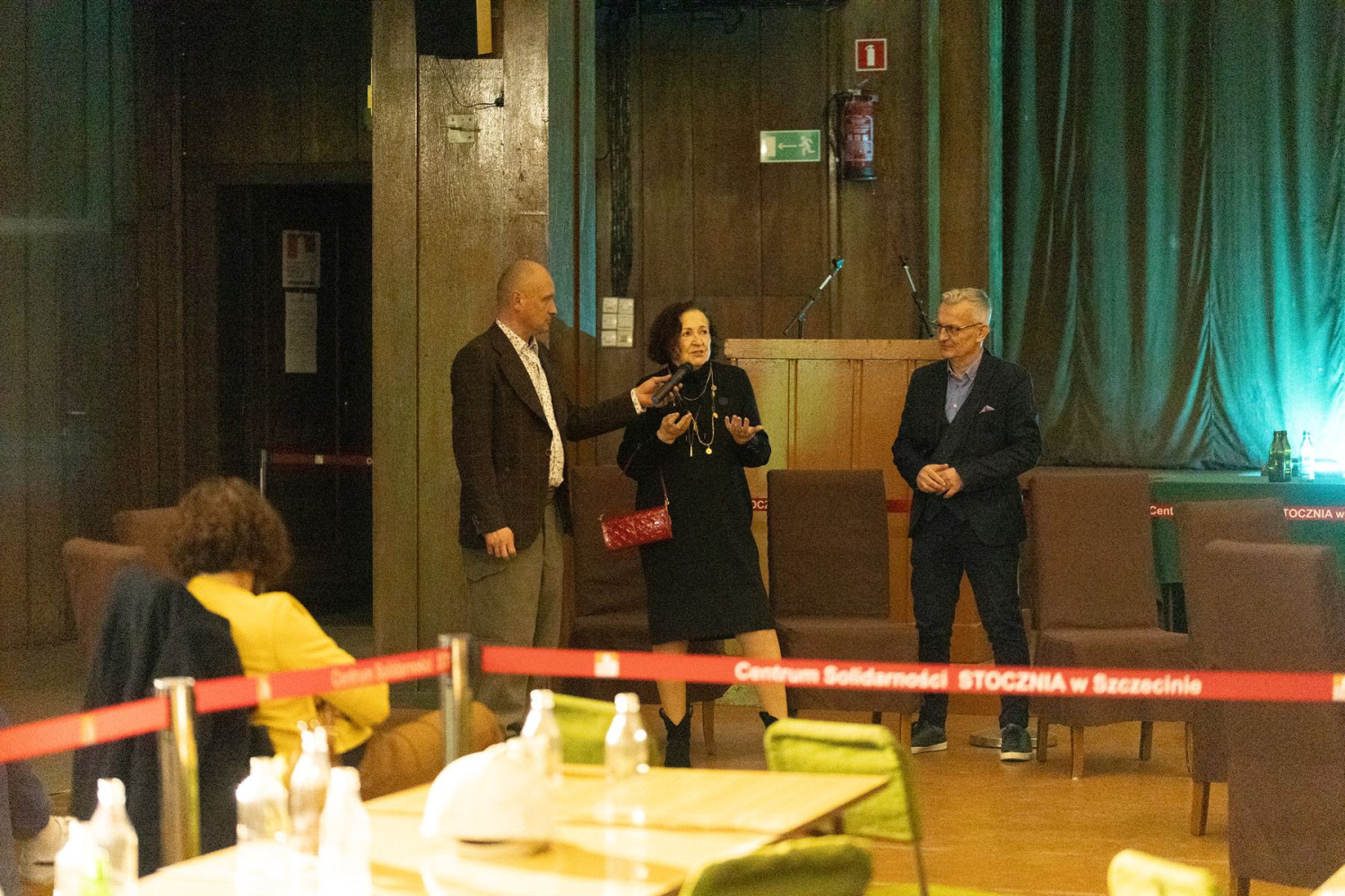 W pierwszych minutach spotkania usłyszeliśmy krótkie wystąpienia zastępcy prezydenta Szczecina, Marcina Biskupskiego oraz gospodarza obiektu – dyrektora Centrum Solidarności „Stocznia” w Szczecinie – Sebastiana Ligarskiego, a także organizatora wydarzenia Otwarte Pracownie, Rafała Bajeny. Przypomniano m.in. jak ważnym miejscem dla tradycji dialogu i porozumień jest stoczniowa Świetlica.