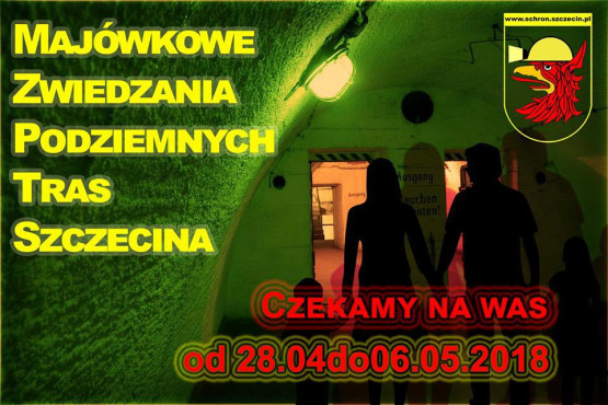 Podziemne Trasy Szczecina zapraszają w weekend do zwiedzenia schronu pod dworcem PKP w Szczecinie. To olbrzymia konstrukcja zbudowana przez Niemców w czasie II wojny światowej, przy wykorzystaniu podziemi XVIII-wiecznych fortyfikacji. Odwiedzający mogą wybierać spośród dwóch tras tematycznych. O godz. 12:00 przewodnicy oprowadzają trasą „II Wojna Światowa” - uczestnicy przenoszą się w czasy alianckich bombardowań i odkrywają legendę niekończących się tuneli podziemnego miasta. Z kolei o godz. 13:30 odbywa się spacer trasą „II Wojna Światowa” albo „Zimna Wojna”. Uczestnicy tej drugiej przenoszą się w czasy PRL-u, mogą zwiedzić m.in. centrum dowodzenia i ćwiczeń Obrony Cywilnej. Nie trzeba rezerwacji. Bilety normalne kosztują 25 zł, ulgowe 20 zł i rodzinne 60 zł (2 rodziców + 2 dzieci). Dzieci do 5 lat zwiedzają gratis. Zwiedzanie schronów będzie możliwe przez całą majówkę - aż do 6 maja włącznie. Więcej tutaj