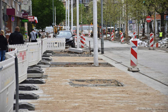 Obecnie na przebudowywanym odcinku al. Wojska Polskiego prowadzone są przede wszystkim prace brukarskie i sieciowe.