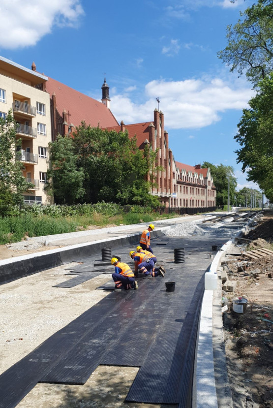 Obecnie prace w ramach „torowej rewolucji” w rejonie ulicy Kolumba prowadzone są w kilku miejscach jednocześnie. W ostatnich dniach ekipy budowlane zajęły się pracami brukarskimi związanymi m.in. z ułożeniem obrzeży na chodnikach i ścieżkach rowerowych przy ulicy Smolańskiej. Pojawiły się też podbudowy na chodniku i w rejonie torowiska. W okolicy odbywały się także roboty torowe przy budynku socjalnym.